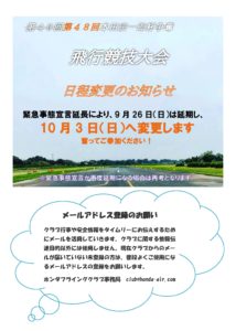 2021クラブ大会日程変更案内 1 2021.09.13 Tweet 投稿者: Web-master コメント: 0 コメント ( 0 ) トラックバックは利用できません。 この記事へのコメントはありません。 コメントするためには、 ログイン してください。 関連記事一覧 第46回本田宗一郎杯争奪飛行競技大会 今年もジュニアウイングスを開催いたしました ジュニアウィングス2019 クラブ懇親会中止のお知らせ 高知航空秘話(本田技研社有機パイパーペイサーと高知空港の... 福島空港空の日フェスティバルに参加しました クラブ通常総会について ジュニアウィングス2022開催 飛行競技大会 延期のお知らせ